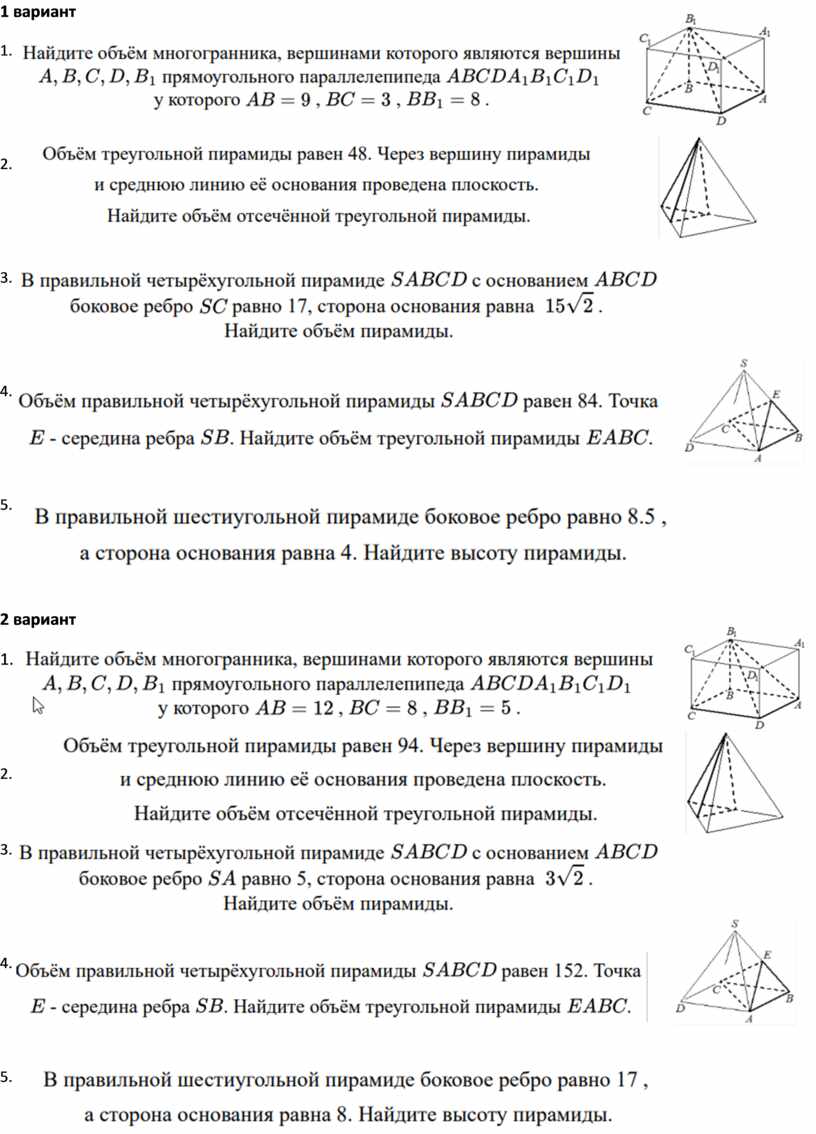 самостоятельная работа по теме "Пирамида" ( №3 ЕГЭ профильный уровень) )