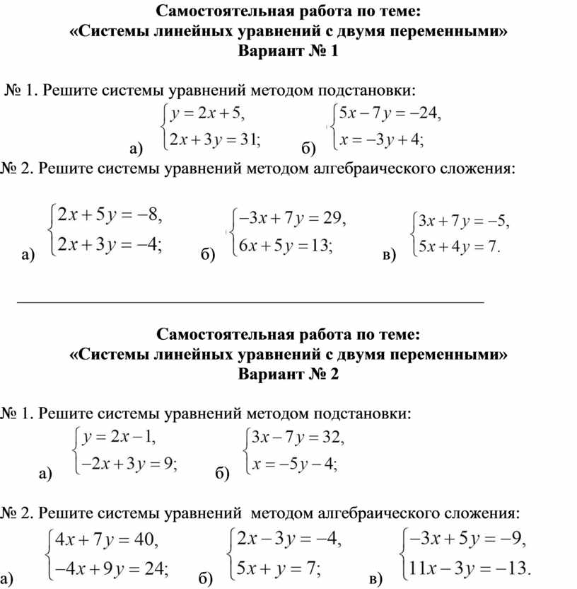 № 2. Решите системы уравнений методом алгебраического сложения: