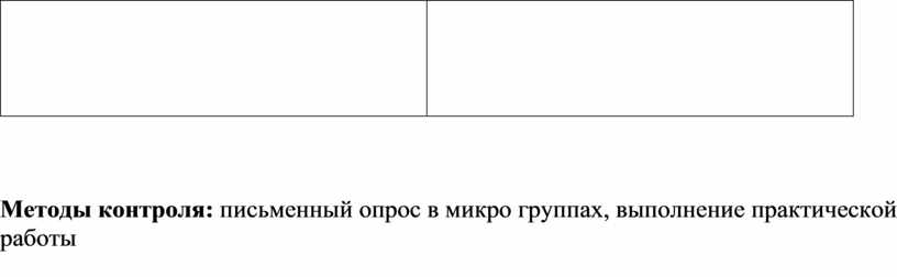 Методы контроля: письменный опрос в микро группах, выполнение практической работы
