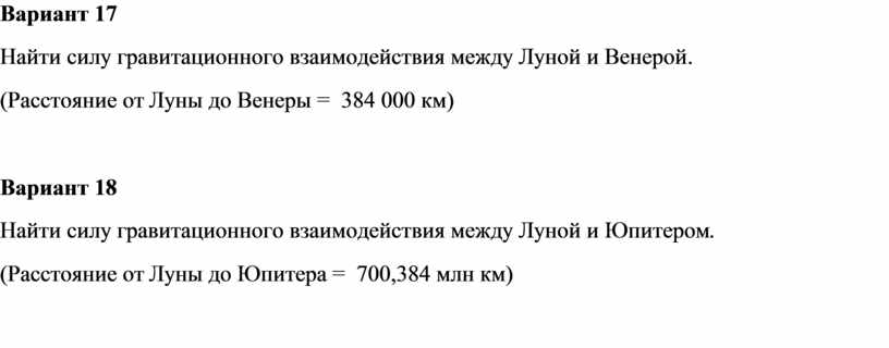 Найти силу гравитационного взаимодействия между Луной и Венерой.