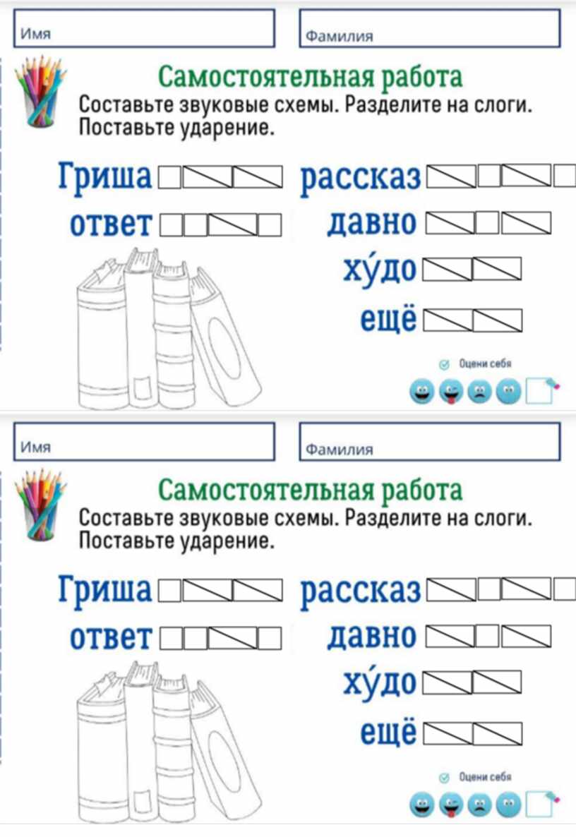 Самостоятельная работа "Звуковые схемы слов с изученными буквами"