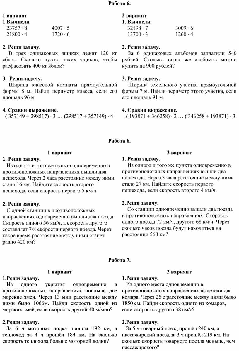 Самостоятельные работы Математика 4 класс, 3 четверть