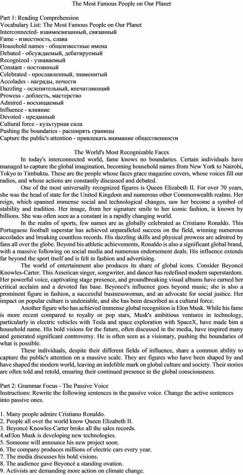 Vocabulary List: The Most Famous People on Our Planet