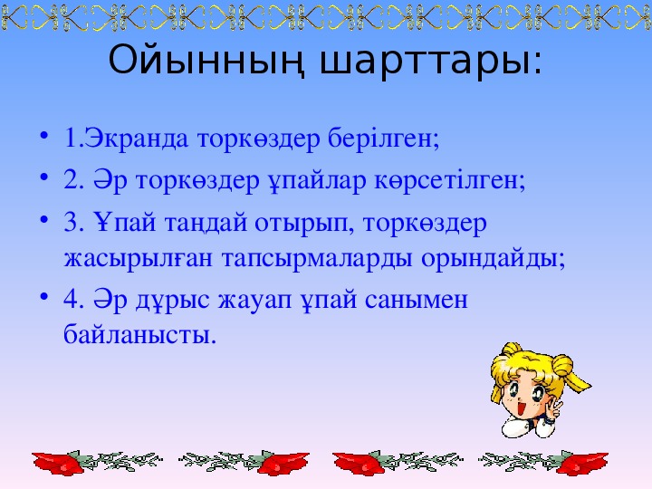 • 2. Әр торкөздер ұпайлар көрсетілген;