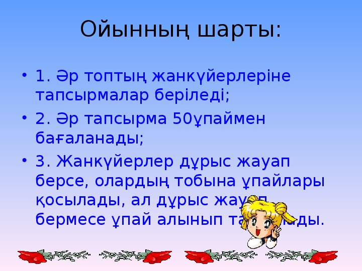 жауап бере алмаса, ол ұпай бірінші топқа беріледі;