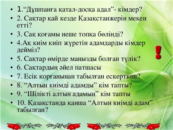 • 1.“Дұшпанға қаталдосқа адал” кімдер?