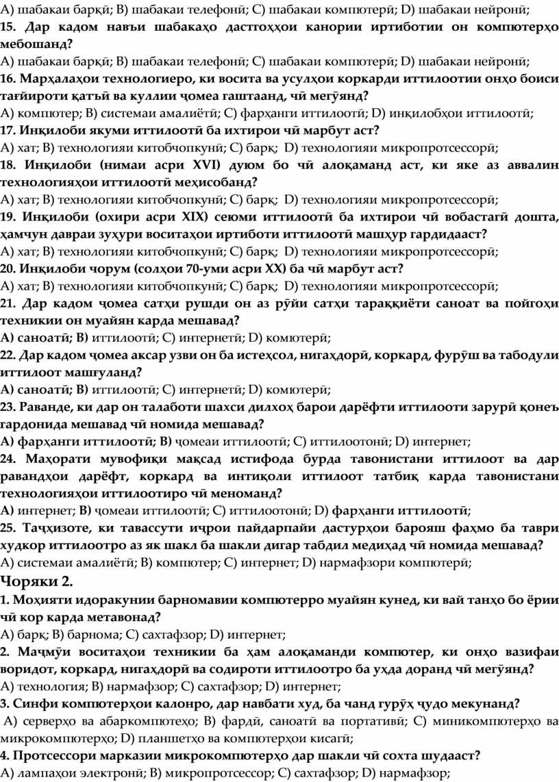 A) компютер; B) системаи амалиётӣ; C) фарҳанги иттилоотӣ; D) инқилобҳои иттилоотӣ;