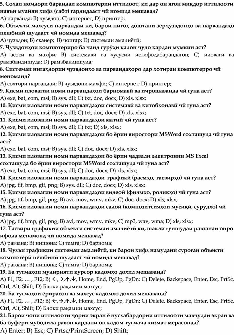 A) системаи амалиётӣ; B) формати парванда; C) компютер; D) принтер