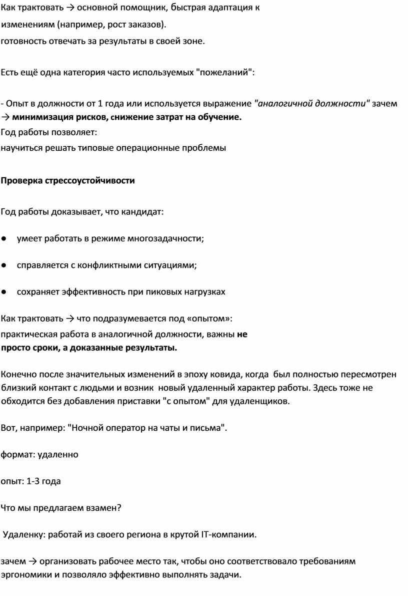 как трактовать → опыт удалённой работы часто свидетельствует о том, что кандидат умеет управлять своим временем и ресурсами, ожидание, что кандидат уже освоил инструменты для удалённой работы и умеет эффективно взаимодействовать в цифровой среде.