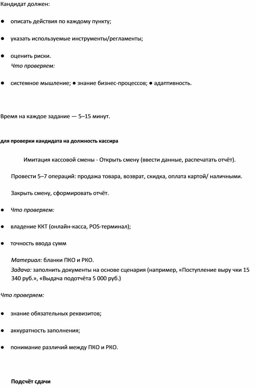 для проверки кандидата на должность администратора (в зависимости от сферы: о фис, гостиница, клиника, магазин, IT-инфраструктура