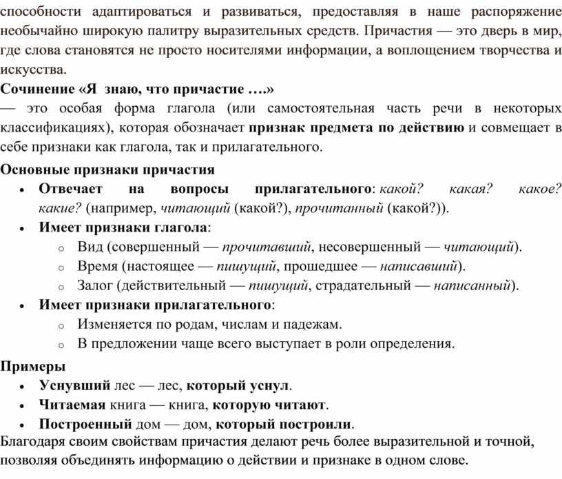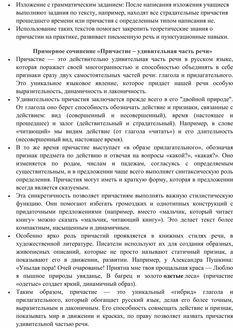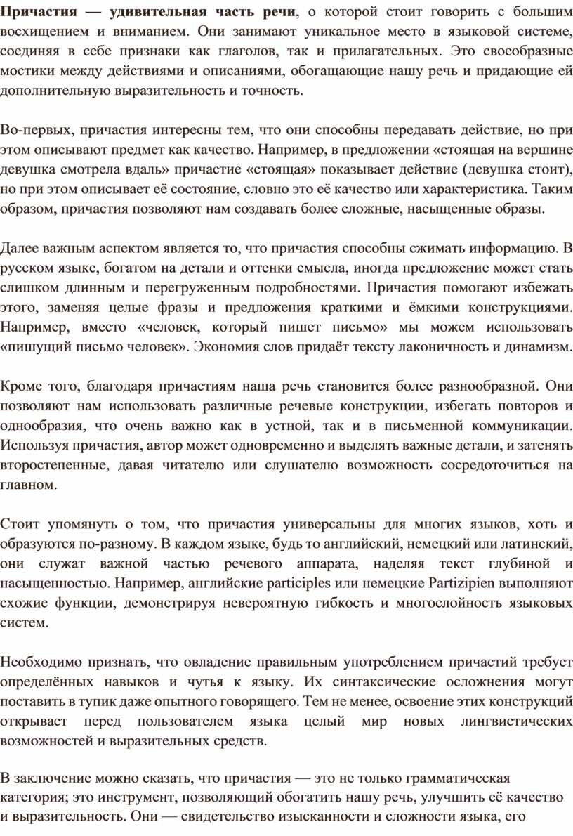 Примерное сочинение «Причастие – удивительная часть речи»