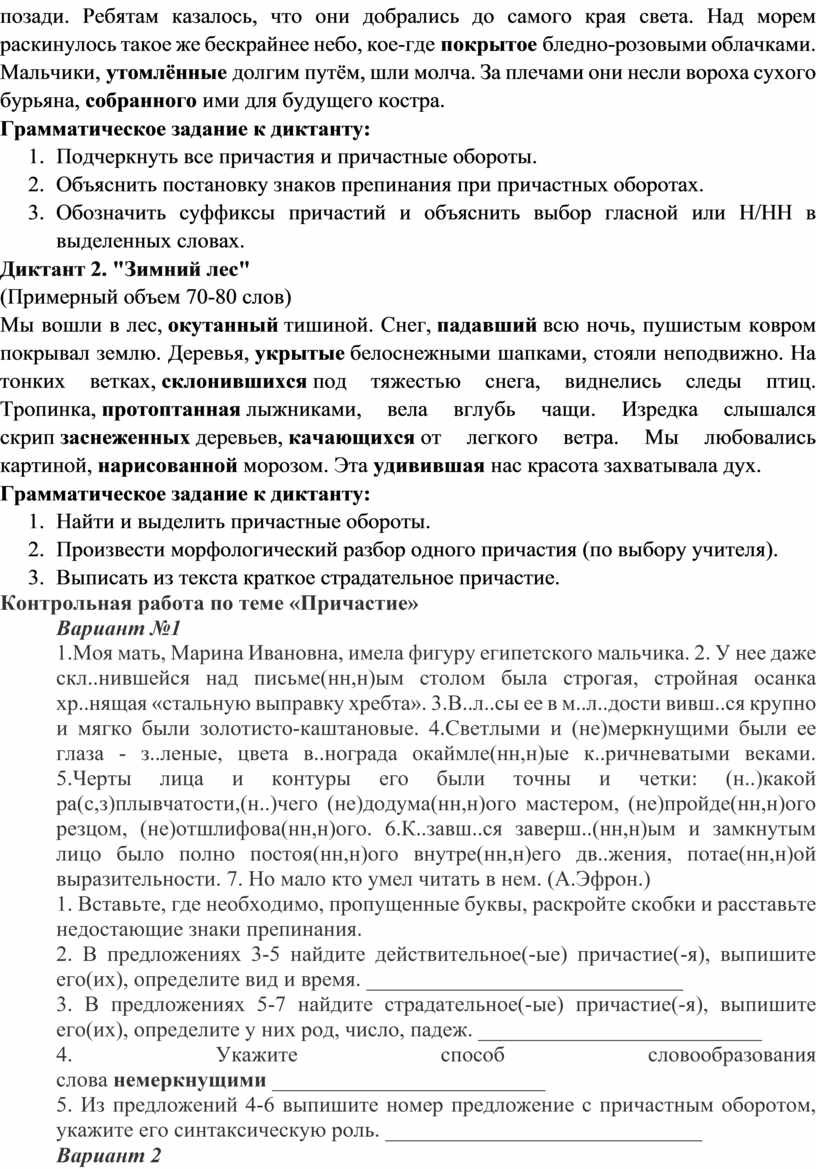 Диктанты по теме "Причастия"