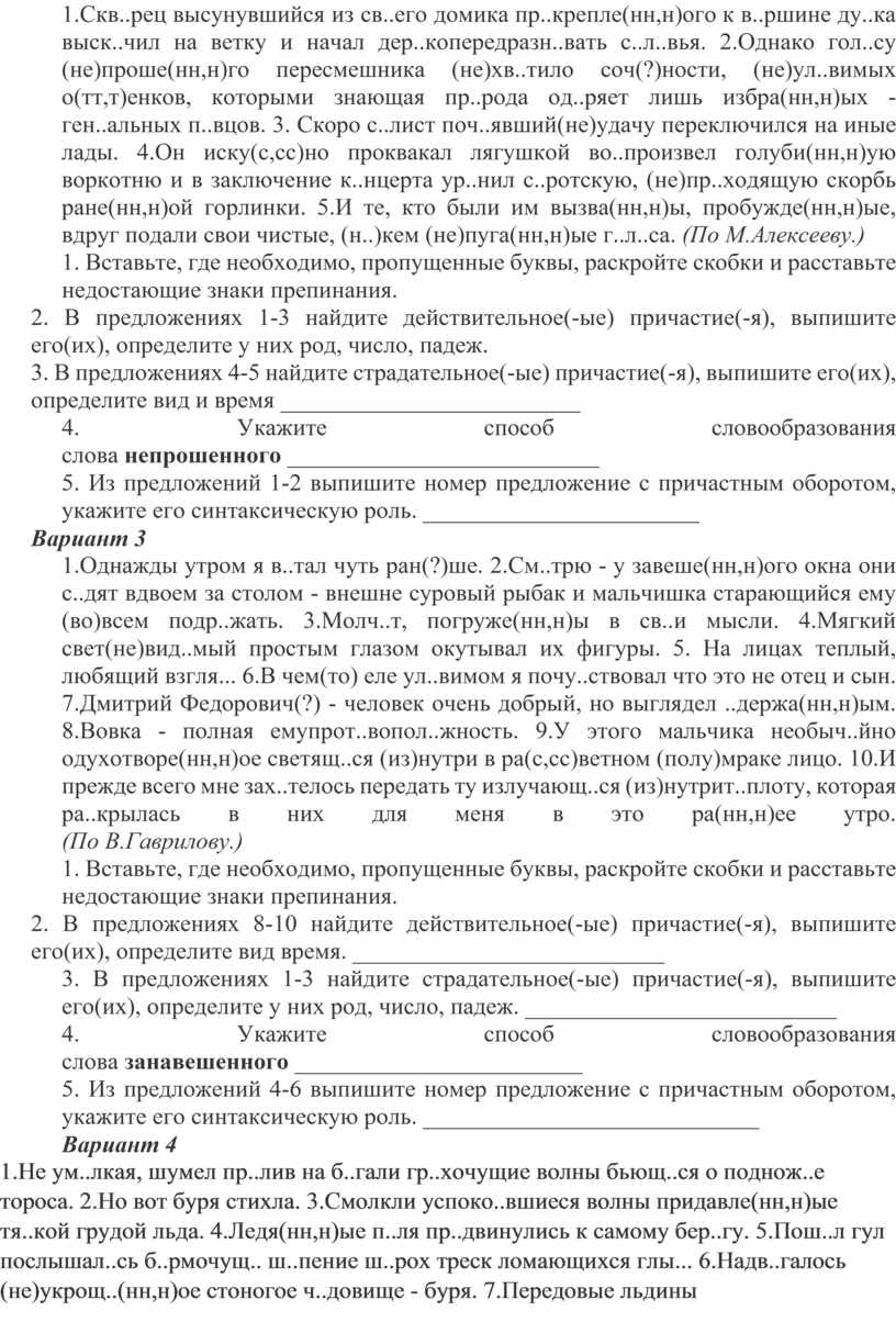 Вариант 1 (С упором на суффиксы причастий)