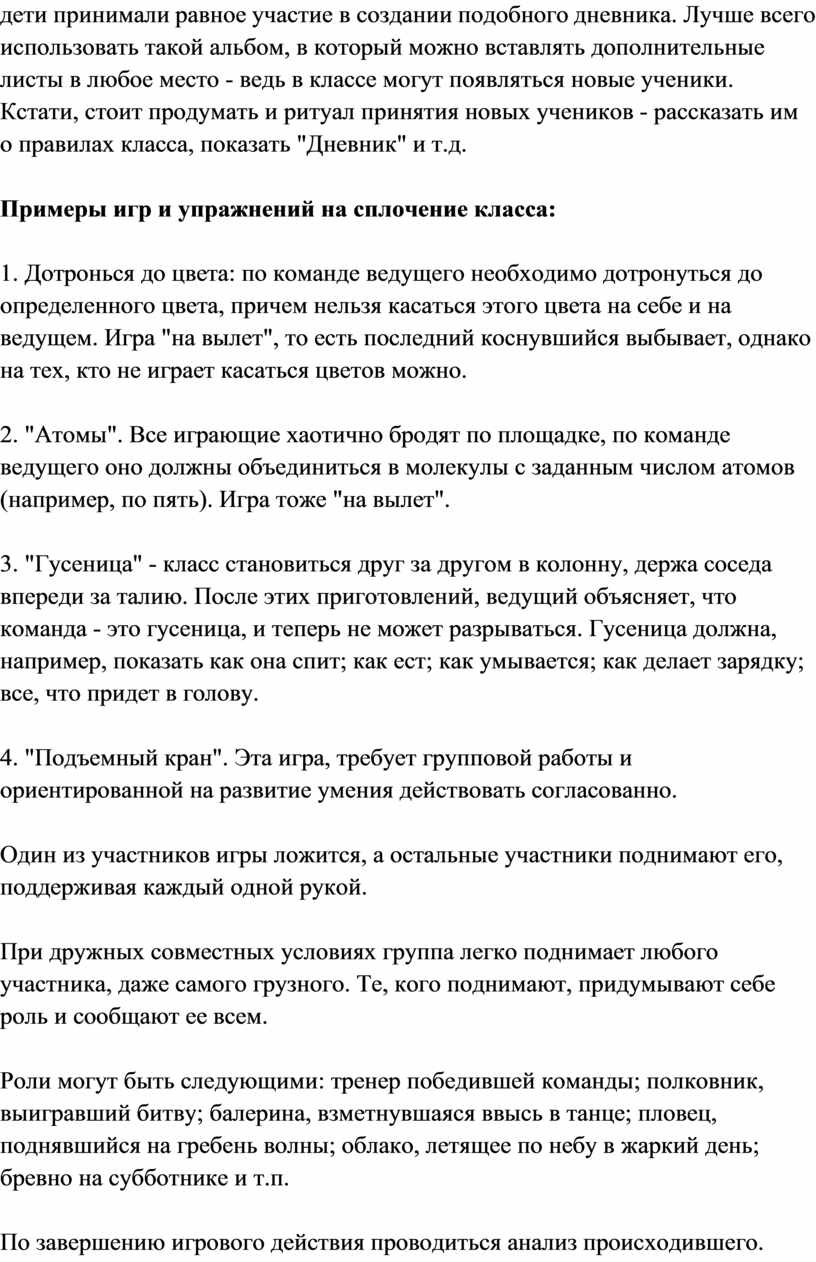 Примеры игр и упражнений на сплочение класса: