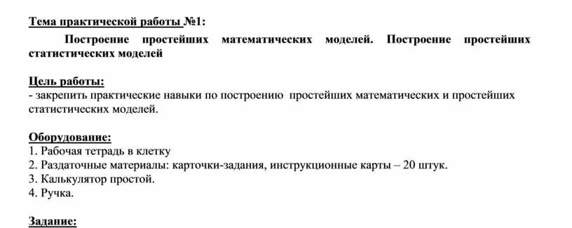 - закрепить практические навыки по построению простейших математических и простейших статистических моделей.