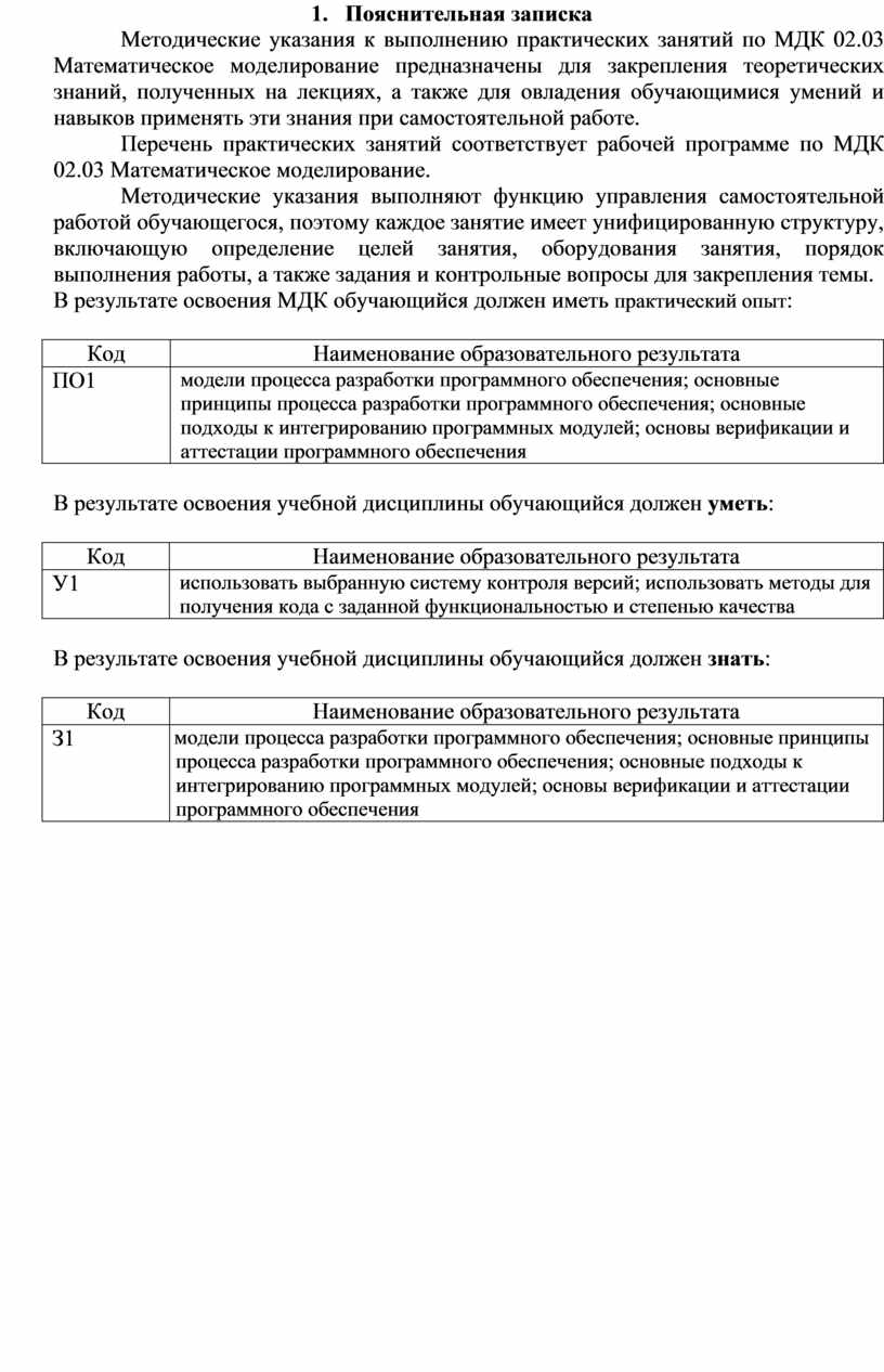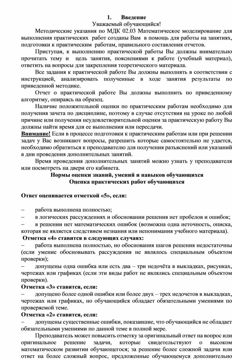 Настоящий сборник методических указаний включает в себя пояснительную записку, рекомендации по оформлению отчётов по выполняемым практическим работам, непосредственно методические указания по выполнению каждой работы в соответствии с рабочей программой МДК 02.03 Математическое моделирование.