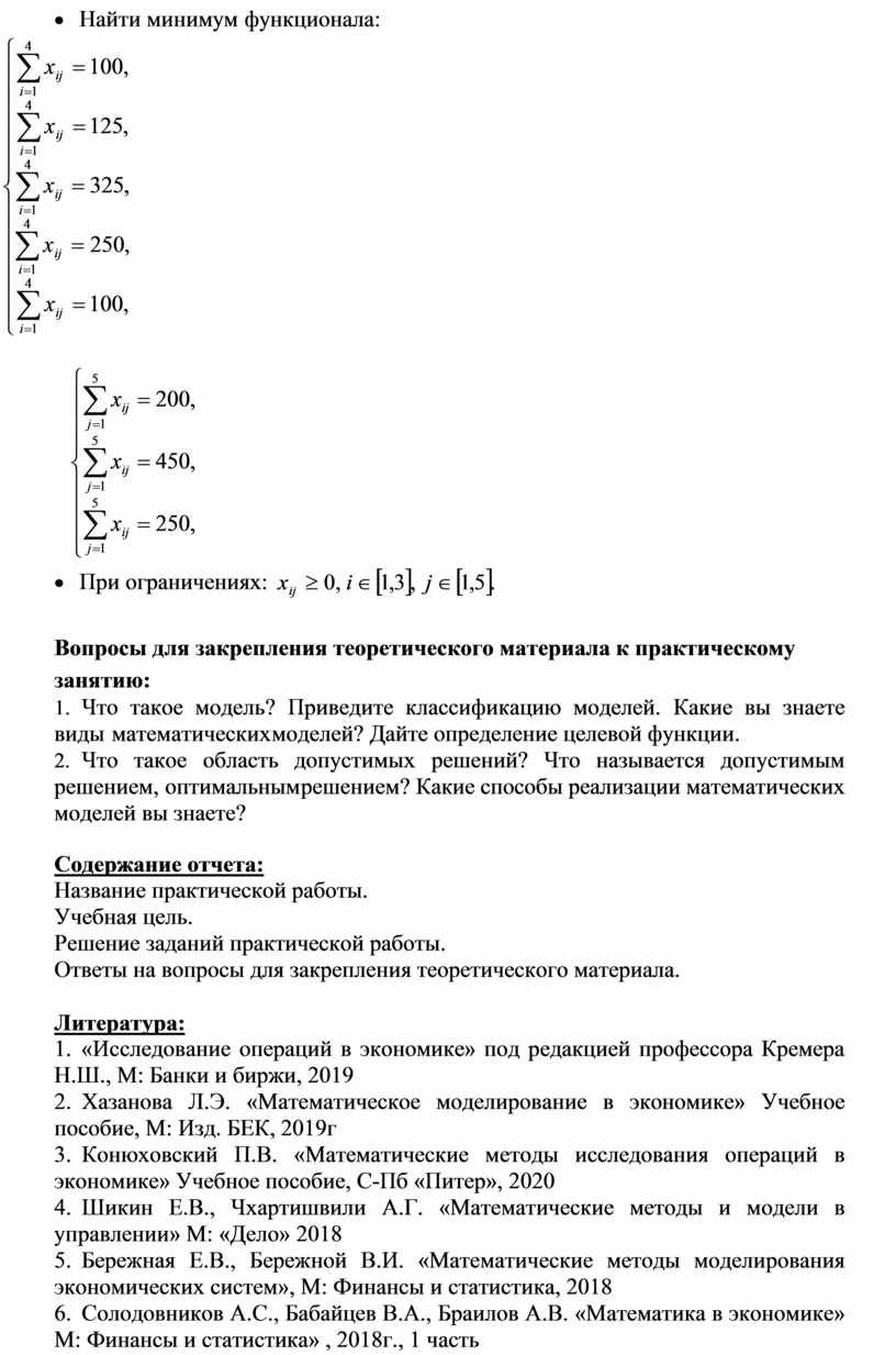9. Черемухина О.В. Сборник задач по дисциплине «Экономико-математическое моделирование» для студентов очного и заочного отделений экономических специальностей. Уральск 2020г.
