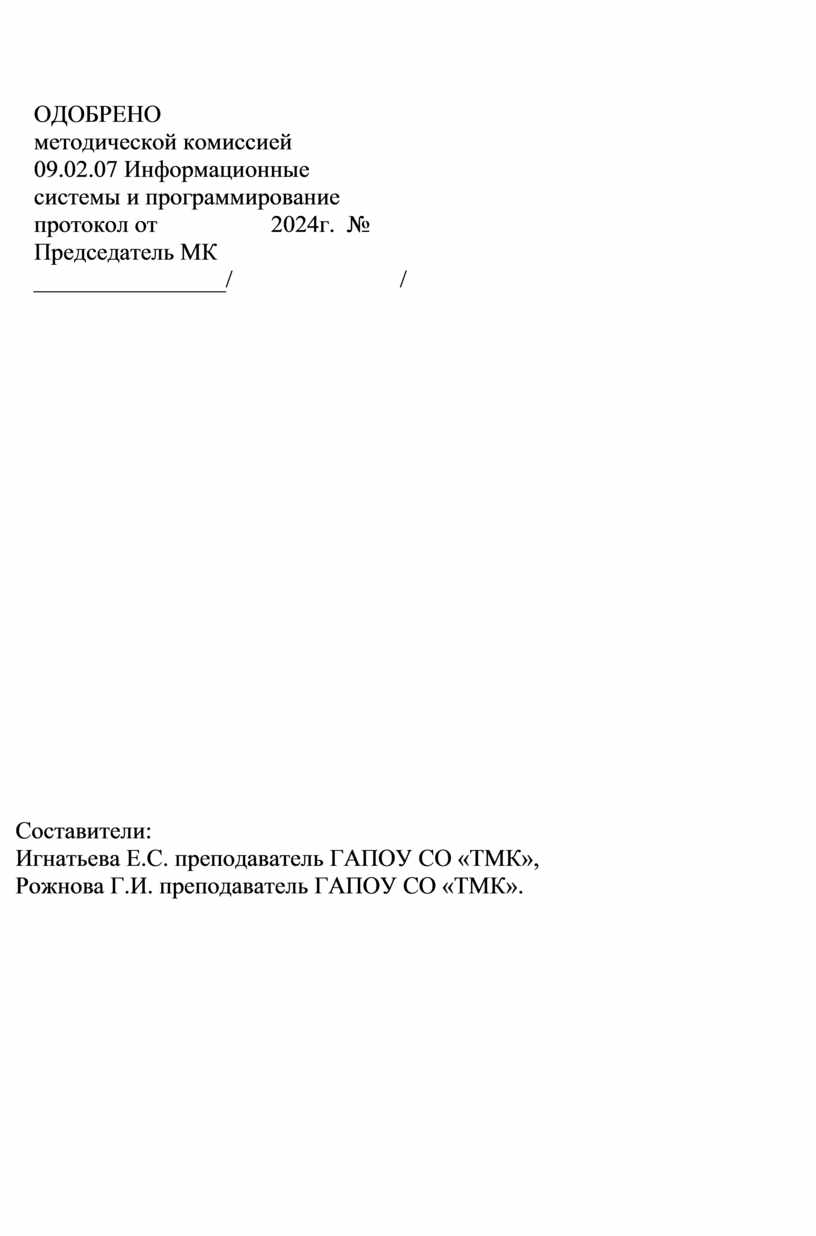 Сборник методических указаний для обучающихся по выполнению практических работ на практических занятиях является частью программы подготовки специалистов среднего звена ГАПОУ СО «ТМК» по специальности 09.02.07 Информационные системы и программирование в соответствии с требованиями ФГОС СПО.
