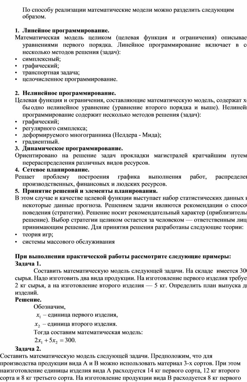 Практическая работа №2 Решение простейших однокритериальных задач |