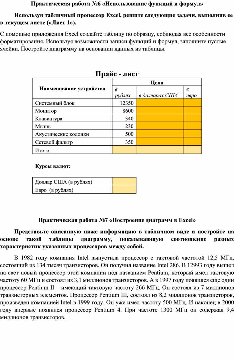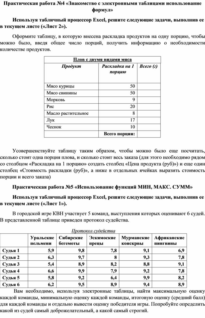 Практическая работа №4 «Знакомство с электронными таблицами использование формул»