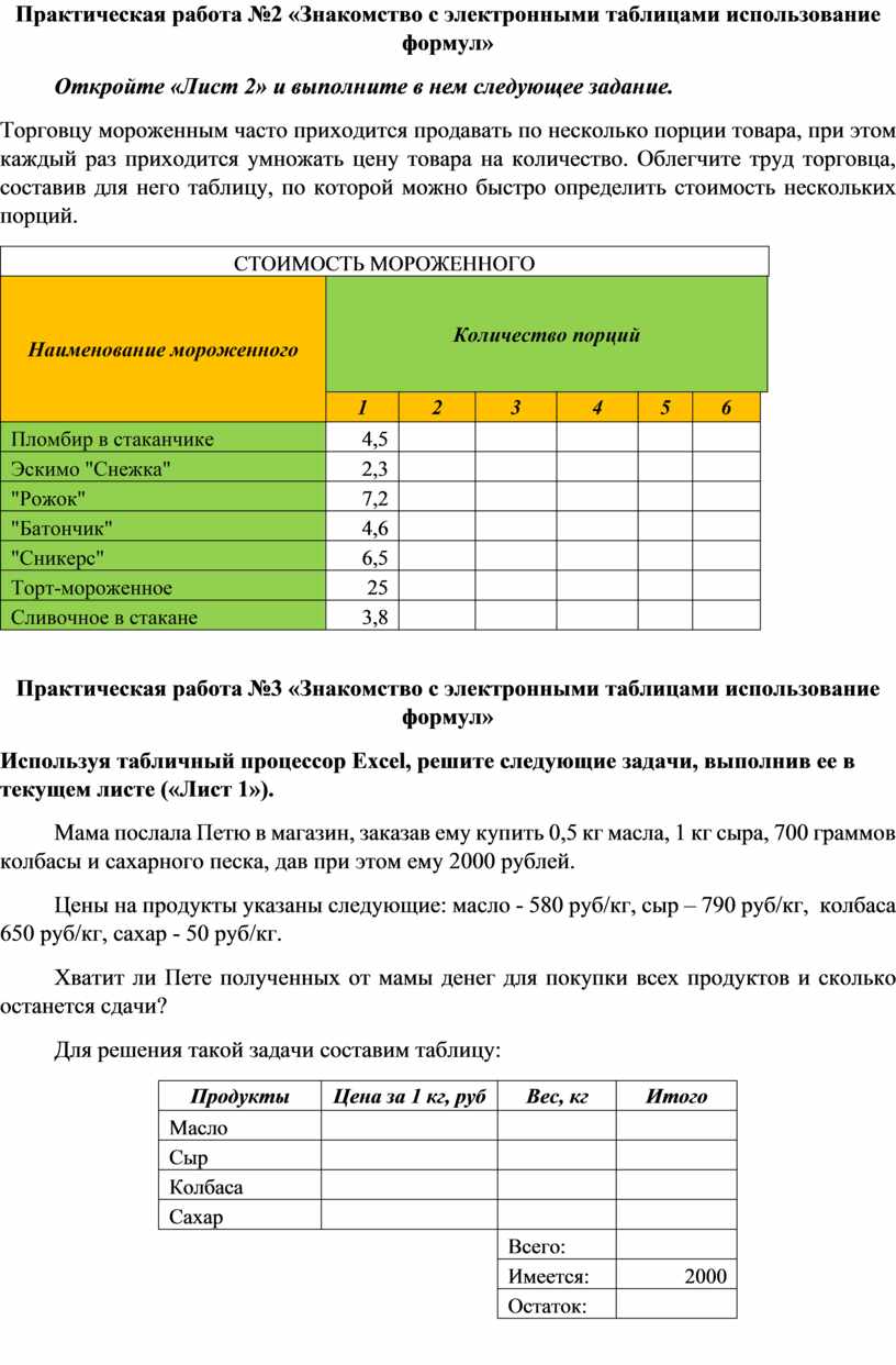 Практическая работа №2 «Знакомство с электронными таблицами использование формул»