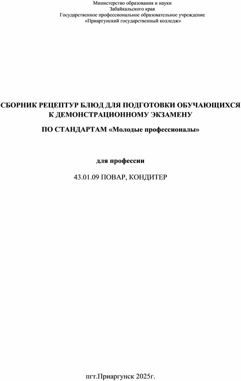 СБОРНИК РЕЦЕПТУР БЛЮД ДЛЯ ПОДГОТОВКИ ОБУЧАЮЩИХСЯ К ДЕМОНСТРАЦИОННОМУ ЭКЗАМЕНУ