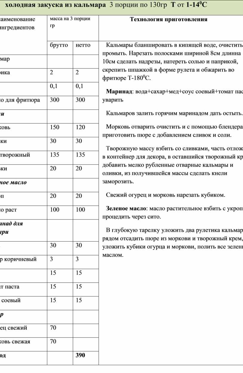 Целью создания сборника является обобщение разработанных технологических карт для подготовки обучающихся к демонстрационному экзамену по стандартам «Молодые профессионалы». Кроме технологических карт, в сборнике представлены фотографии - как варианты оформления блюд с учетом стандартов «Молодые профессионалы» правила техники безопасности при работе с оборудованием, список литературы.