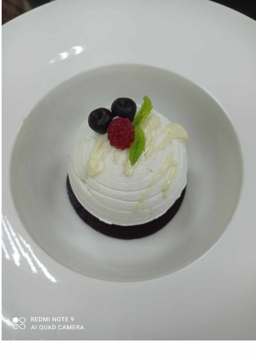 Малину и чернику прогреть до состояния пюре, с добавлением сахара и вина. Добавить агар-агар. Перетереть через сито и залить в силиконовые формы «Ягоды». |