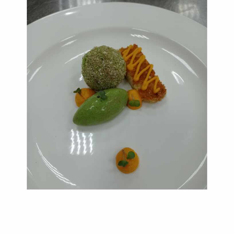 Цукини нарезаем произвольно, выкладываем на пергамент, посыпаем чесноком и тимьяном, поливаем оливковым маслом, запекаем 10-15 мин при 170С. Шпинат бланшируем 2-3 мин. И сливаем воду, все смешиваем и пробиваем блендером со сливками, постепенно их добавляя Морковь карамелизуем, отвариваем, пробиваем блендером с частью отвара и постепенно добавляя сливки. |