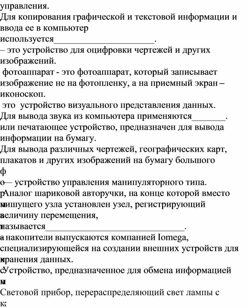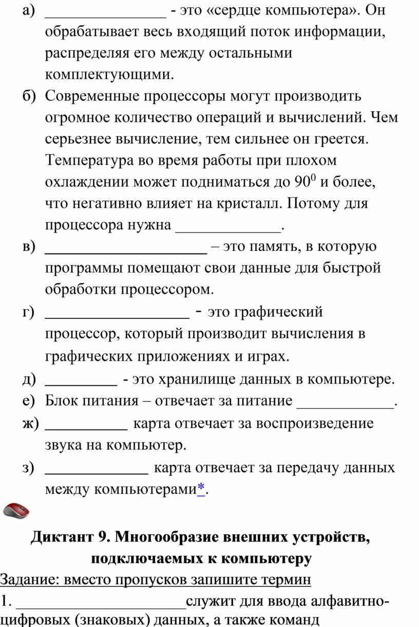 Диктант 9. Многообразие внешних устройств, подключаемых к компьютеру