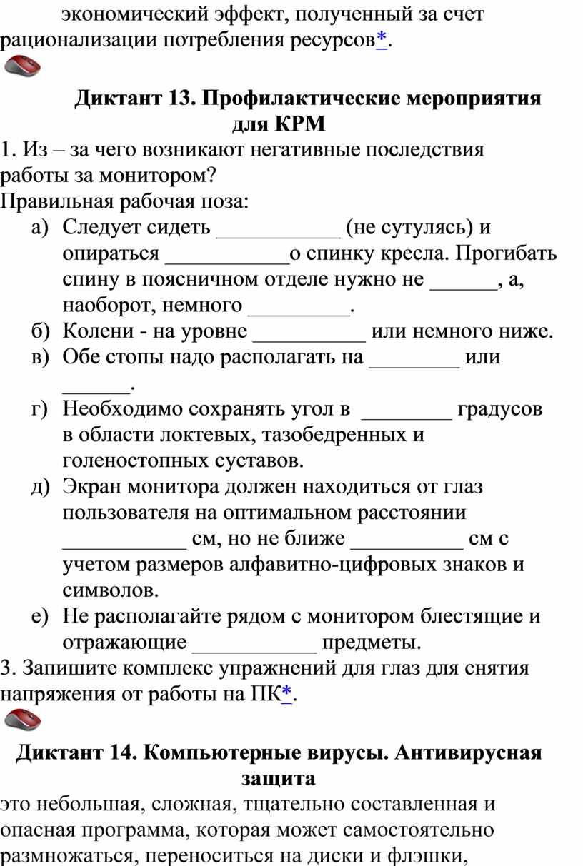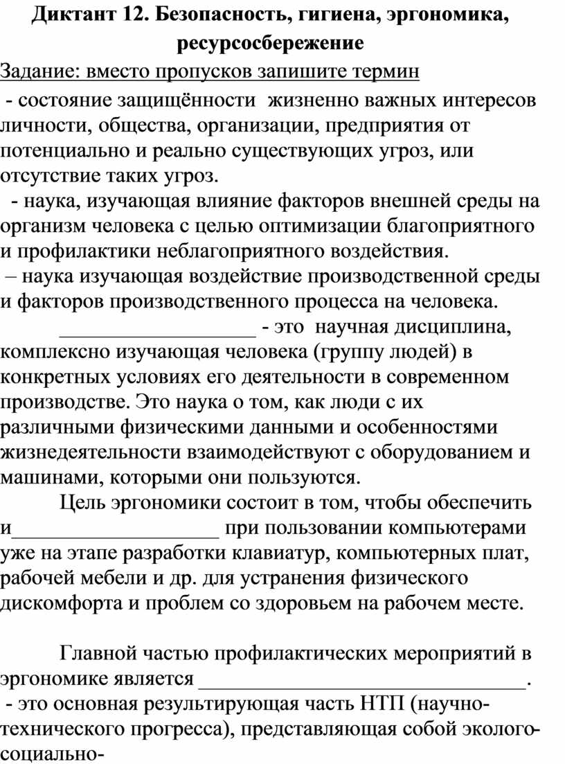 Диктант 12. Безопасность, гигиена, эргономика, ресурсосбережение
