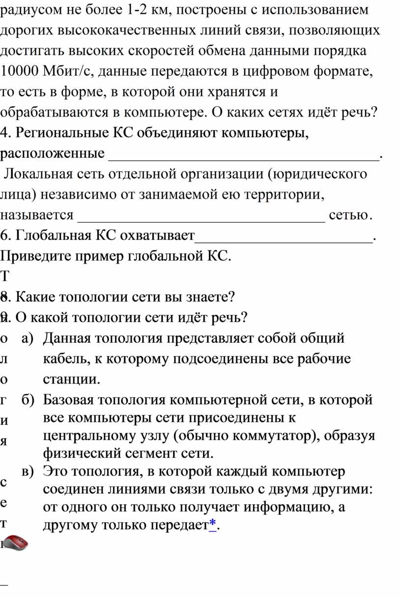 г) ________________вычислительные сети (наиболее распространенные: Ethernet, Token Ring);