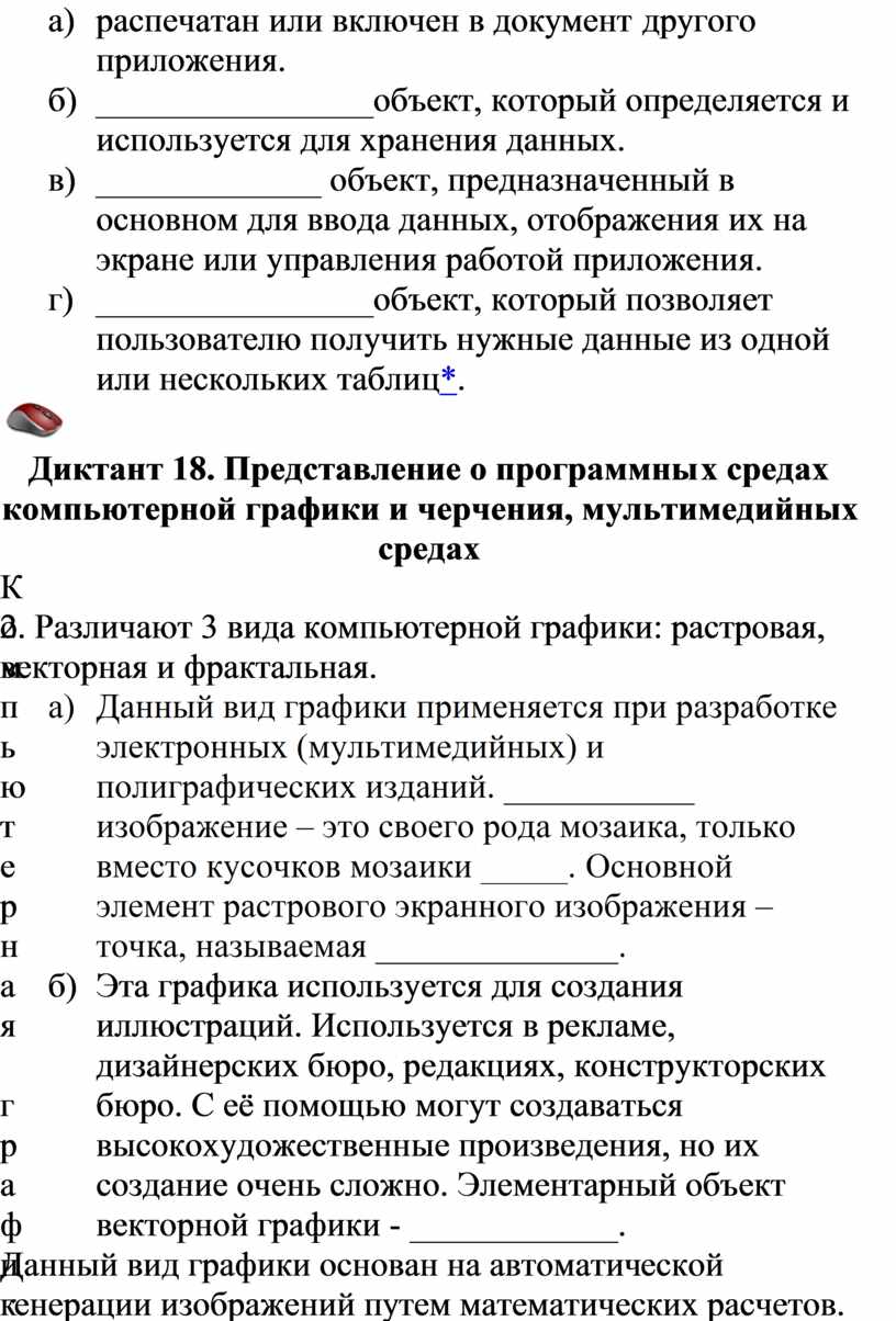 Диктант 18. Представление о программных средах компьютерной графики и черчения, мультимедийных средах