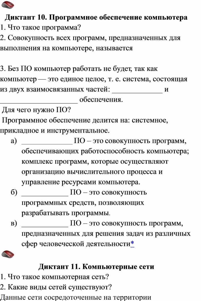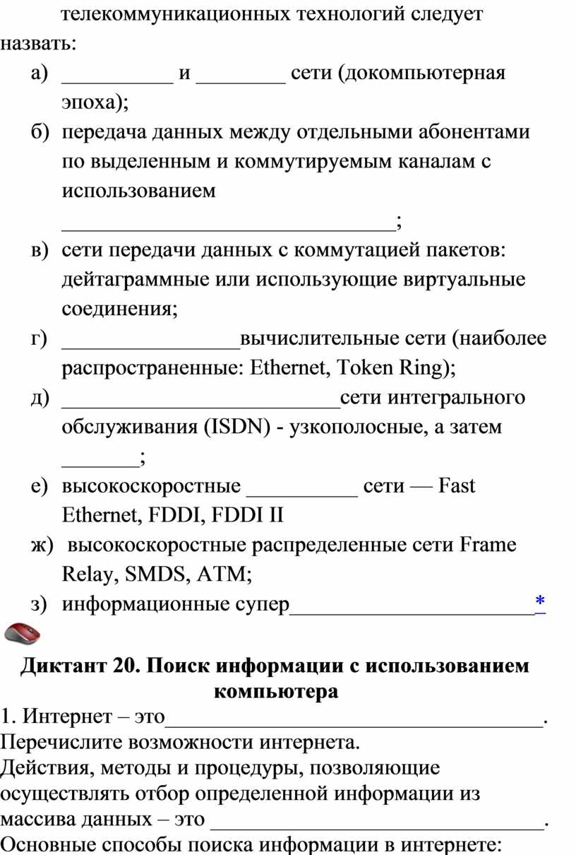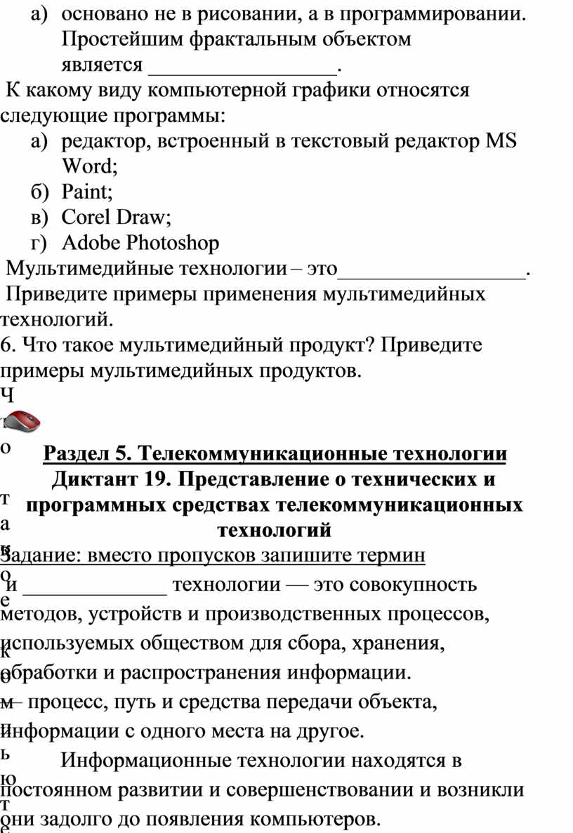 Диктант 19. Представление о технических и программных средствах телекоммуникационных технологий