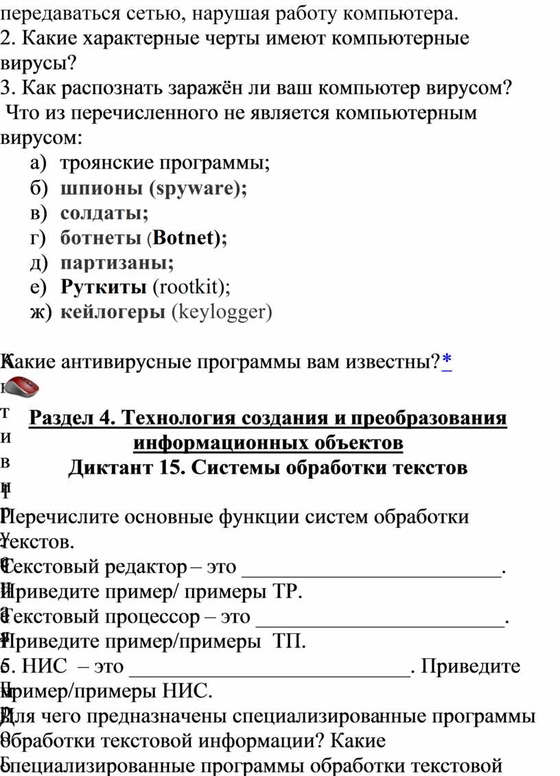 Диктант 14. Компьютерные вирусы. Антивирусная защита