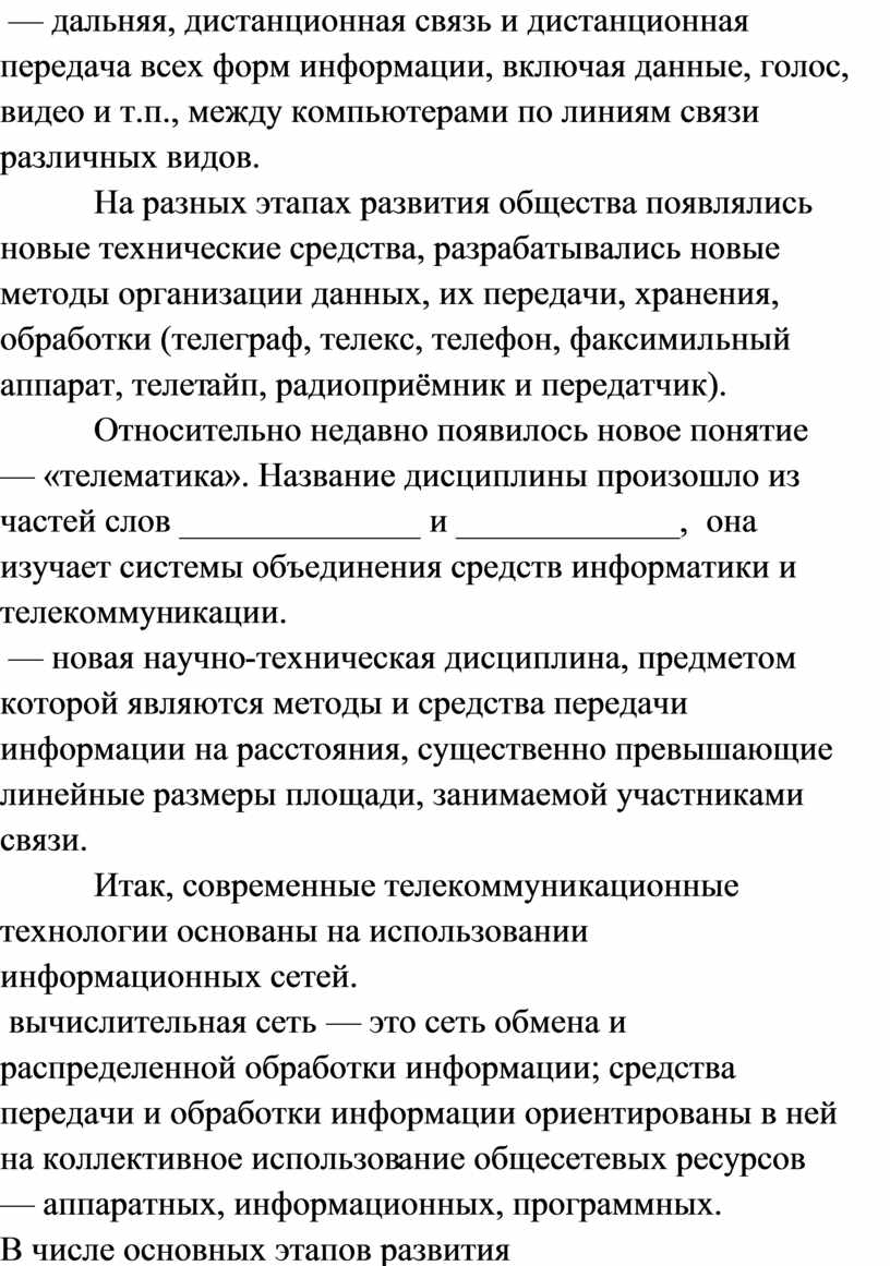 Итак, современные телекоммуникационные технологии основаны на использовании информационных сетей.