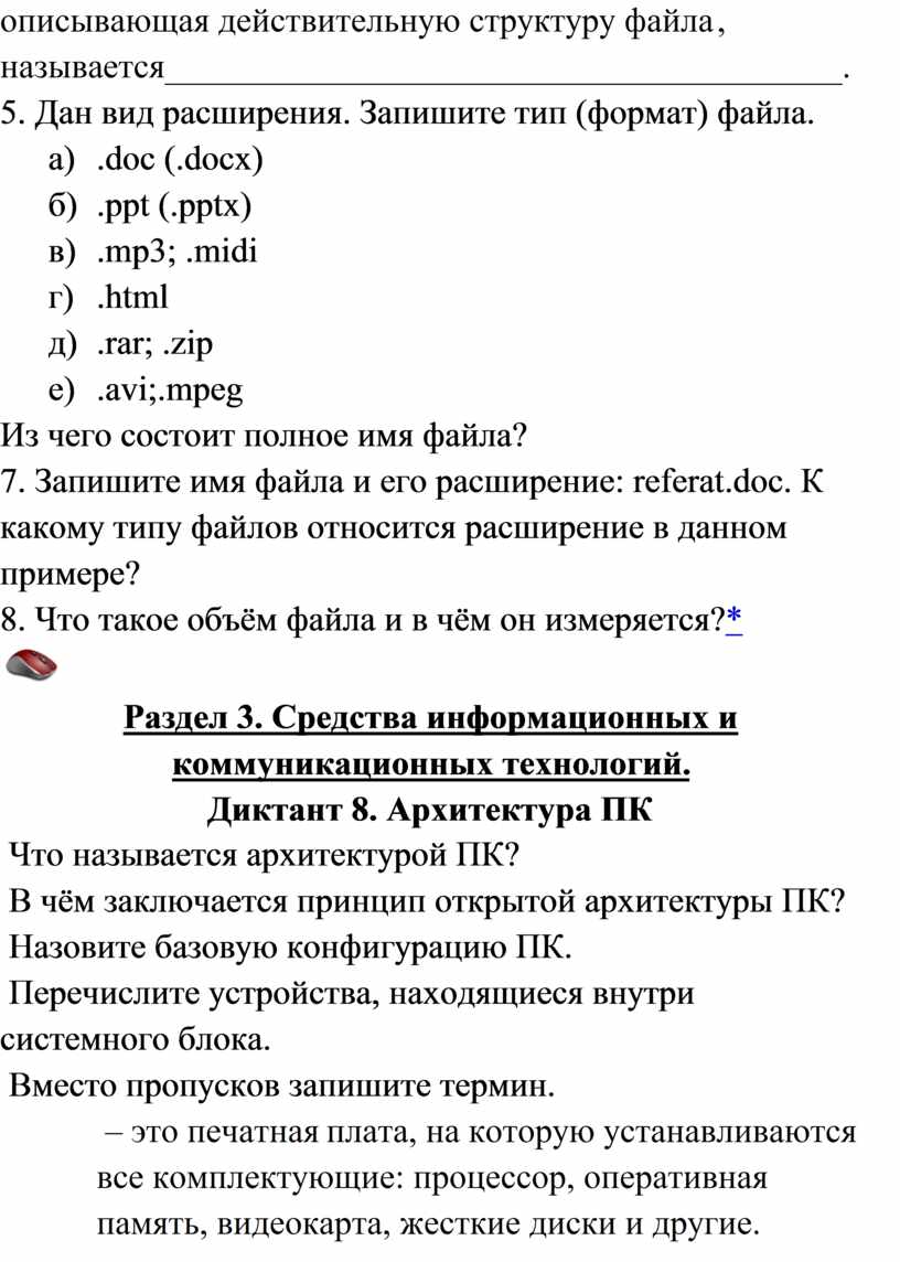 Диктанты предназначены для проверки усвоения основных понятий темы.