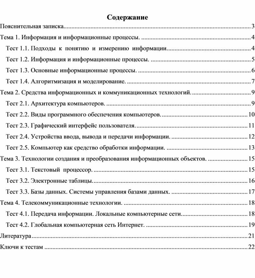 В данном сборнике представлены тесты для проверки знаний по основным темам базового курса информатики. Тесты можно использовать также на этапе закрепления знаний по пройденному материалу как обучающие. Сборник содержит тестовые задания по темам, что позволит учителю качественно проверить, как усвоен новый материал, выявить наиболее сложные вопросы, устранить пробелы в знаниях. На основе имеющихся тестовых заданий можно составлять итоговые многовариантные тесты.