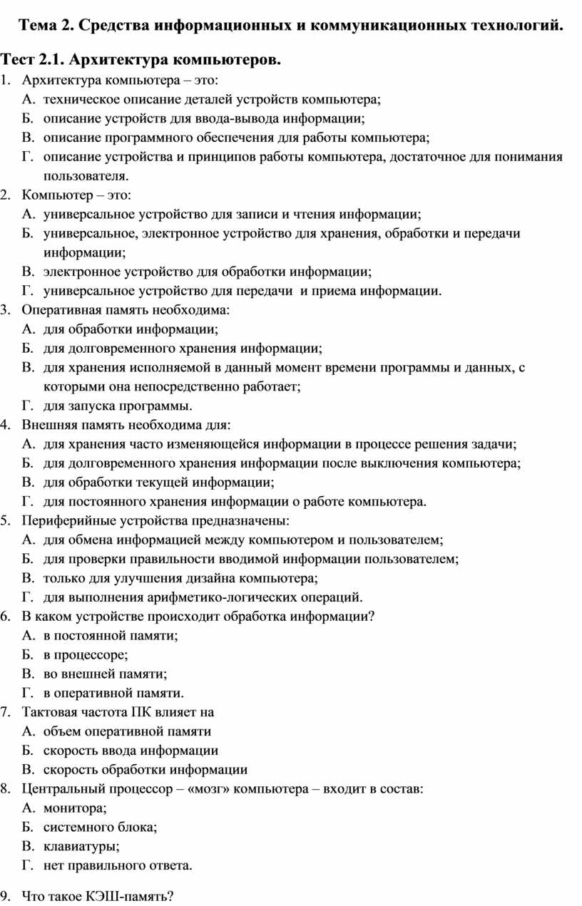 Тест 2.1. Архитектура компьютеров.