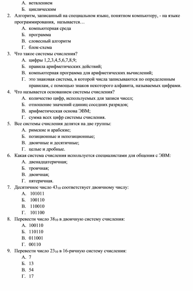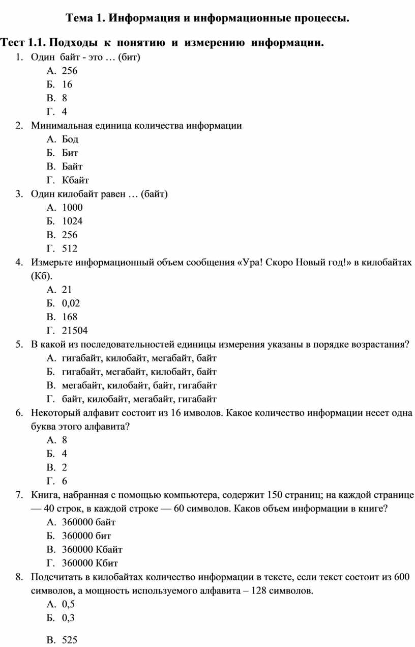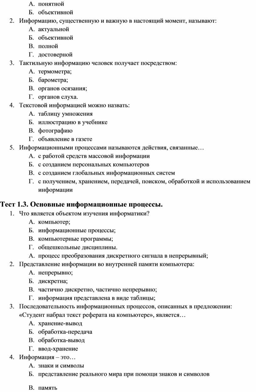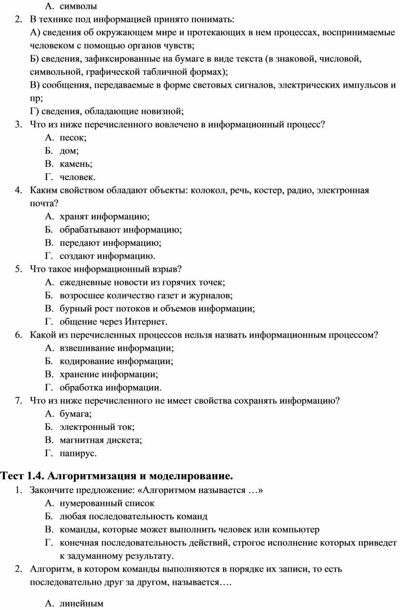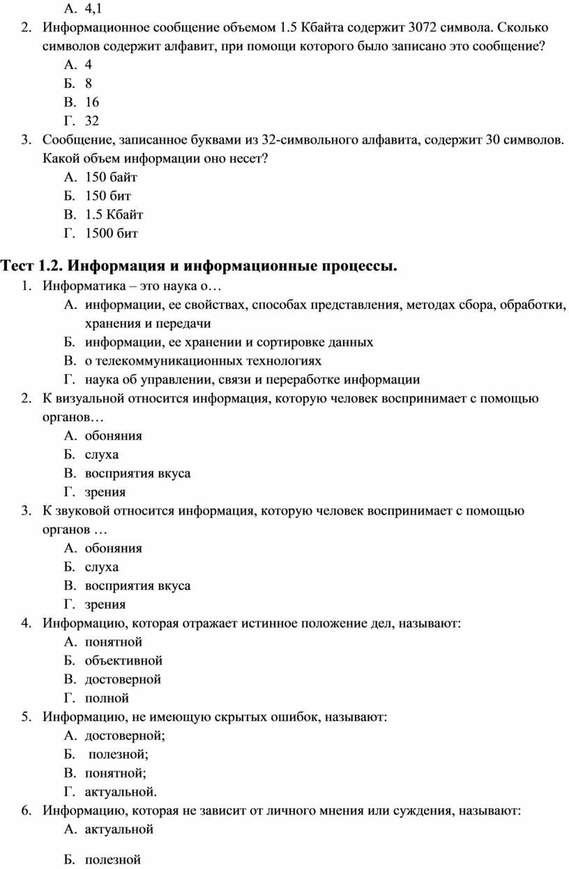 Тест 1.2. Информация и информационные процессы.