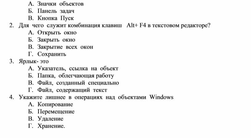Ответы даны для всех представленных вопросов.