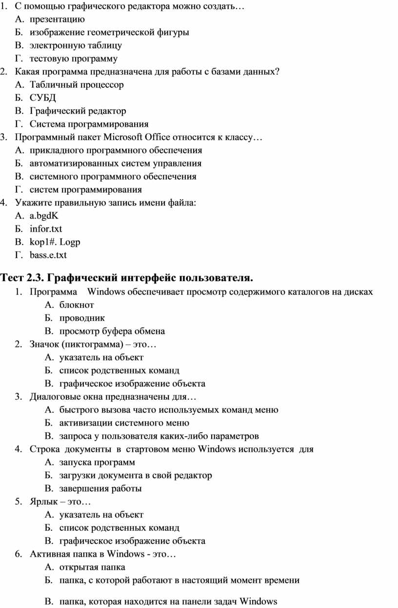 Тест 2.3. Графический интерфейс пользователя.