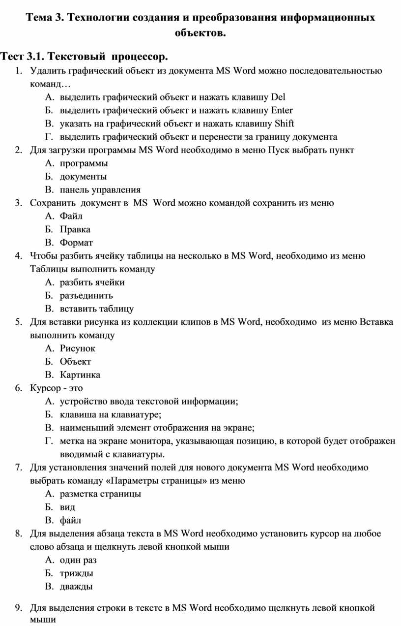 Тест 3.1. Текстовый процессор.