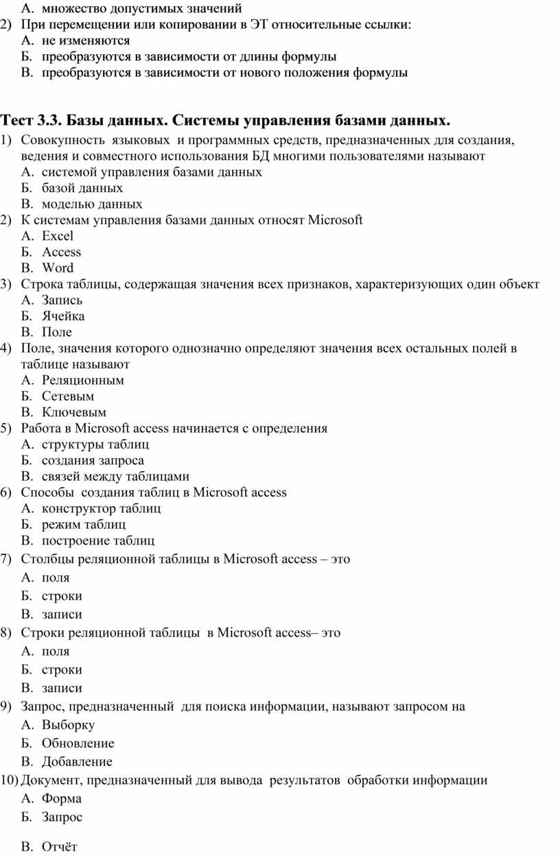Тест 3.3. Базы данных. Системы управления базами данных.