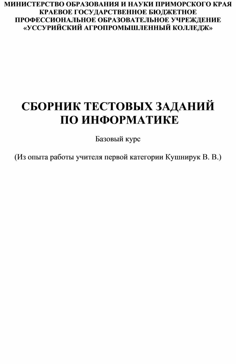 СБОРНИК ТЕСТОВЫХ ЗАДАНИЙ