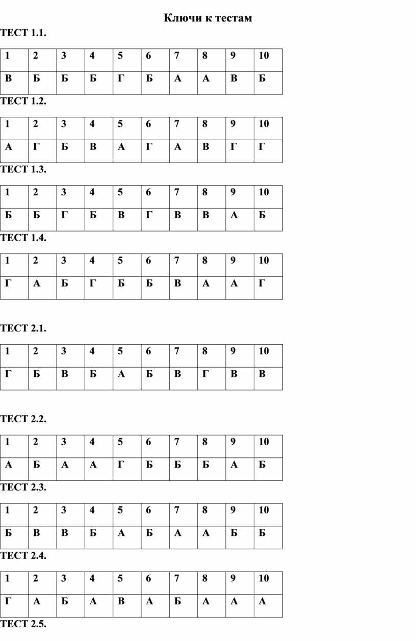 Ключи к тестам