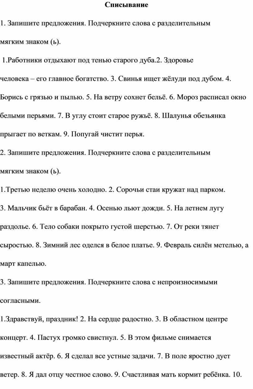 1. Запишите предложения. Подчеркните слова с разделительным