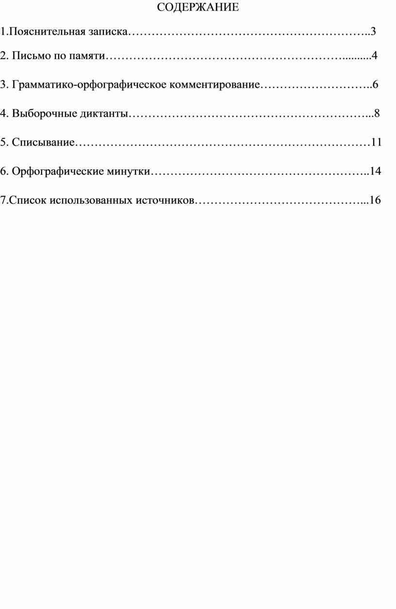 2. Письмо по памяти……………………………………………………..........4