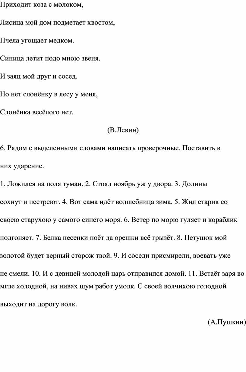 ударением. Поставьте ударение. Напишите проверочные слова.