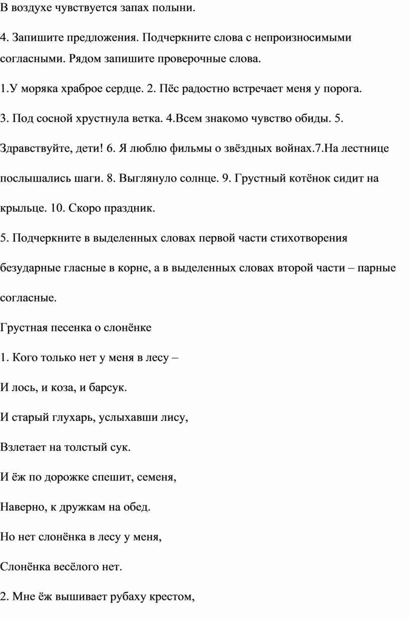 5. Подчеркните в выделенных словах первой части стихотворения